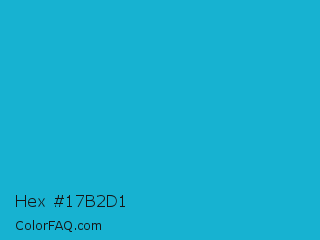 Hex #17b2d1 Color is a normal cyan color and the nearest color is Battery Charged Blue #1dacd6. Hex code #17b2d1 and RGB value is rgb(23,178,209). In RGB color space, this color is composed of 9% red, 70% green, 82% blue, In CMYK color space, this color is composed of 89% cyan, 15% magenta, 0% yellow , 18% black , In HSL color space, this color has a hue angle of 190° , 80% saturation and 45% lightness.