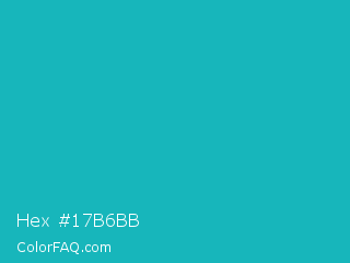 Hex #17b6bb Color is a normal cyan color and the nearest color is Tiffany Blue #0abab5. Hex code #17b6bb and RGB value is rgb(23,182,187). In RGB color space, this color is composed of 9% red, 71% green, 73% blue, In CMYK color space, this color is composed of 88% cyan, 3% magenta, 0% yellow , 27% black , In HSL color space, this color has a hue angle of 182° , 78% saturation and 41% lightness.