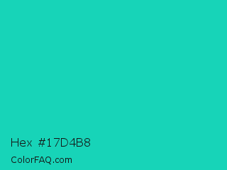 Hex #17d4b8 Color is a normal cyan color and the nearest color is Java #1fc2c2. Hex code #17d4b8 and RGB value is rgb(23,212,184). In RGB color space, this color is composed of 9% red, 83% green, 72% blue, In CMYK color space, this color is composed of 89% cyan, 0% magenta, 13% yellow , 17% black , In HSL color space, this color has a hue angle of 171° , 80% saturation and 46% lightness.