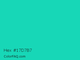 Hex #17d7b7 Color is a normal cyan color and the nearest color is Java #1fc2c2. Hex code #17d7b7 and RGB value is rgb(23,215,183). In RGB color space, this color is composed of 9% red, 84% green, 72% blue, In CMYK color space, this color is composed of 89% cyan, 0% magenta, 15% yellow , 16% black , In HSL color space, this color has a hue angle of 170° , 81% saturation and 47% lightness.