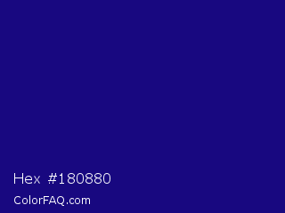 Hex #180880 Color is a dark indigo color and the nearest color is Deep Koamaru #1b127b. Hex code #180880 and RGB value is rgb(24,8,128). In RGB color space, this color is composed of 9% red, 3% green, 50% blue, In CMYK color space, this color is composed of 81% cyan, 94% magenta, 0% yellow , 50% black , In HSL color space, this color has a hue angle of 248° , 88% saturation and 27% lightness.