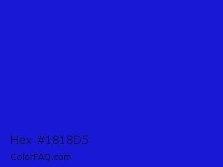 Hex #1818d5 Color is a normal blue color and the nearest color is Bluebonnet #1c1cf0. Hex code #1818d5 and RGB value is rgb(24,24,213). In RGB color space, this color is composed of 9% red, 9% green, 84% blue, In CMYK color space, this color is composed of 89% cyan, 89% magenta, 0% yellow , 16% black , In HSL color space, this color has a hue angle of 240° , 80% saturation and 46% lightness.