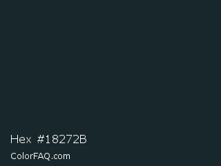 Hex #18272b Color is a very dark cyan color and the nearest color is Dark Gunmetal #1f262a. Hex code #18272b and RGB value is rgb(24,39,43). In RGB color space, this color is composed of 9% red, 15% green, 17% blue, In CMYK color space, this color is composed of 44% cyan, 9% magenta, 0% yellow , 83% black , In HSL color space, this color has a hue angle of 193° , 28% saturation and 13% lightness.