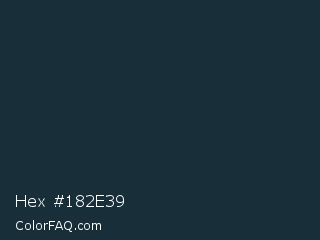 Hex #182e39 Color is a very dark blue color and the nearest color is Big Stone #162a40. Hex code #182e39 and RGB value is rgb(24,46,57). In RGB color space, this color is composed of 9% red, 18% green, 22% blue, In CMYK color space, this color is composed of 58% cyan, 19% magenta, 0% yellow , 78% black , In HSL color space, this color has a hue angle of 200° , 41% saturation and 16% lightness.