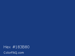 Hex #183b80 Color is a dark blue color and the nearest color is Bay Of Many #273a81. Hex code #183b80 and RGB value is rgb(24,59,128). In RGB color space, this color is composed of 9% red, 23% green, 50% blue, In CMYK color space, this color is composed of 81% cyan, 54% magenta, 0% yellow , 50% black , In HSL color space, this color has a hue angle of 220° , 68% saturation and 30% lightness.