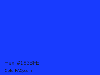 Hex #183bfe Color is a normal blue color and the nearest color is Blue RYB #0247fe. Hex code #183bfe and RGB value is rgb(24,59,254). In RGB color space, this color is composed of 9% red, 23% green, 100% blue, In CMYK color space, this color is composed of 91% cyan, 77% magenta, 0% yellow , 0% black , In HSL color space, this color has a hue angle of 231° , 99% saturation and 55% lightness.