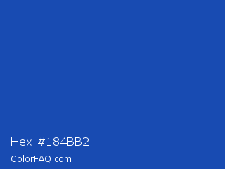 Hex #184bb2 Color is a normal blue color and the nearest color is Tory Blue #1450aa. Hex code #184bb2 and RGB value is rgb(24,75,178). In RGB color space, this color is composed of 9% red, 29% green, 70% blue, In CMYK color space, this color is composed of 87% cyan, 58% magenta, 0% yellow , 30% black , In HSL color space, this color has a hue angle of 220° , 76% saturation and 40% lightness.