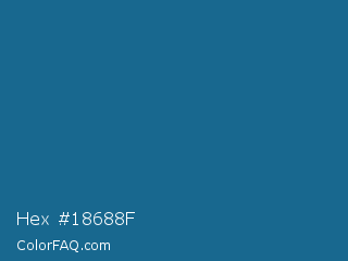 Hex #18688f Color is a normal blue color and the nearest color is Matisse #1b659d. Hex code #18688f and RGB value is rgb(24,104,143). In RGB color space, this color is composed of 9% red, 41% green, 56% blue, In CMYK color space, this color is composed of 83% cyan, 27% magenta, 0% yellow , 44% black , In HSL color space, this color has a hue angle of 200° , 71% saturation and 33% lightness.