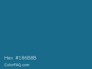 Hex #186b8b Color is a normal blue color and the nearest color is Blue Sapphire #126180. Hex code #186b8b and RGB value is rgb(24,107,139). In RGB color space, this color is composed of 9% red, 42% green, 55% blue, In CMYK color space, this color is composed of 83% cyan, 23% magenta, 0% yellow , 45% black , In HSL color space, this color has a hue angle of 197° , 71% saturation and 32% lightness.