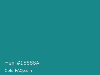Hex #18888a Color is a normal cyan color and the nearest color is Blue Chill #0c8990. Hex code #18888a and RGB value is rgb(24,136,138). In RGB color space, this color is composed of 9% red, 53% green, 54% blue, In CMYK color space, this color is composed of 83% cyan, 1% magenta, 0% yellow , 46% black , In HSL color space, this color has a hue angle of 181° , 70% saturation and 32% lightness.