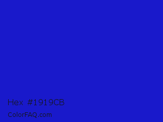 Hex #1919cb Color is a normal blue color and the nearest color is Interdimensional Blue #360ccc. Hex code #1919cb and RGB value is rgb(25,25,203). In RGB color space, this color is composed of 10% red, 10% green, 80% blue, In CMYK color space, this color is composed of 88% cyan, 88% magenta, 0% yellow , 20% black , In HSL color space, this color has a hue angle of 240° , 78% saturation and 45% lightness.