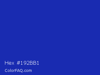 Hex #192bb1 Color is a normal blue color and the nearest color is Egyptian Blue #1034a6. Hex code #192bb1 and RGB value is rgb(25,43,177). In RGB color space, this color is composed of 10% red, 17% green, 69% blue, In CMYK color space, this color is composed of 86% cyan, 76% magenta, 0% yellow , 31% black , In HSL color space, this color has a hue angle of 233° , 75% saturation and 40% lightness.