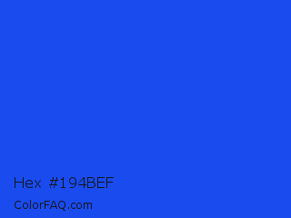 Hex #194bef Color is a normal blue color and the nearest color is Palatinate Blue #273be2. Hex code #194bef and RGB value is rgb(25,75,239). In RGB color space, this color is composed of 10% red, 29% green, 94% blue, In CMYK color space, this color is composed of 90% cyan, 69% magenta, 0% yellow , 6% black , In HSL color space, this color has a hue angle of 226° , 87% saturation and 52% lightness.