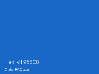 Hex #1968c8 Color is a normal blue color and the nearest color is Denim #1560bd. Hex code #1968c8 and RGB value is rgb(25,104,200). In RGB color space, this color is composed of 10% red, 41% green, 78% blue, In CMYK color space, this color is composed of 88% cyan, 48% magenta, 0% yellow , 22% black , In HSL color space, this color has a hue angle of 213° , 78% saturation and 44% lightness.