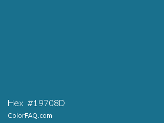 Hex #19708d Color is a normal blue color and the nearest color is Matisse #1b659d. Hex code #19708d and RGB value is rgb(25,112,141). In RGB color space, this color is composed of 10% red, 44% green, 55% blue, In CMYK color space, this color is composed of 82% cyan, 21% magenta, 0% yellow , 45% black , In HSL color space, this color has a hue angle of 195° , 70% saturation and 33% lightness.
