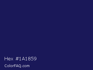 Hex #1a1859 Color is a very dark indigo color and the nearest color is Lucky Point #1a1a68. Hex code #1a1859 and RGB value is rgb(26,24,89). In RGB color space, this color is composed of 10% red, 9% green, 35% blue, In CMYK color space, this color is composed of 71% cyan, 73% magenta, 0% yellow , 65% black , In HSL color space, this color has a hue angle of 242° , 58% saturation and 22% lightness.