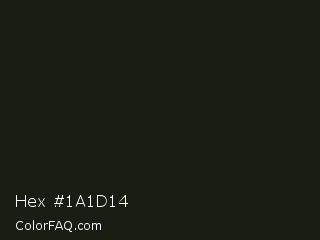 Hex #1a1d14 Color is a very dark green color and the nearest color is Rangoon Green #1c1e13. Hex code #1a1d14 and RGB value is rgb(26,29,20). In RGB color space, this color is composed of 10% red, 11% green, 8% blue, In CMYK color space, this color is composed of 10% cyan, 0% magenta, 31% yellow , 89% black , In HSL color space, this color has a hue angle of 80° , 18% saturation and 10% lightness.