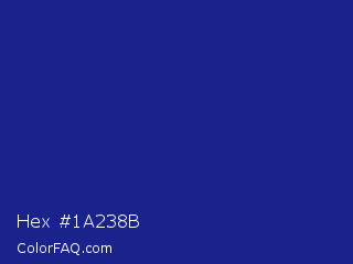 Hex #1a238b Color is a normal blue color and the nearest color is Jacksons Purple #20208d. Hex code #1a238b and RGB value is rgb(26,35,139). In RGB color space, this color is composed of 10% red, 14% green, 55% blue, In CMYK color space, this color is composed of 81% cyan, 75% magenta, 0% yellow , 45% black , In HSL color space, this color has a hue angle of 235° , 68% saturation and 32% lightness.