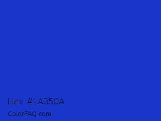Hex #1a35ca Color is a normal blue color and the nearest color is Persian Blue #1c39bb. Hex code #1a35ca and RGB value is rgb(26,53,202). In RGB color space, this color is composed of 10% red, 21% green, 79% blue, In CMYK color space, this color is composed of 87% cyan, 74% magenta, 0% yellow , 21% black , In HSL color space, this color has a hue angle of 231° , 77% saturation and 45% lightness.