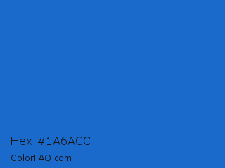 Hex #1a6acc Color is a normal blue color and the nearest color is Bright Navy Blue #1974d2. Hex code #1a6acc and RGB value is rgb(26,106,204). In RGB color space, this color is composed of 10% red, 42% green, 80% blue, In CMYK color space, this color is composed of 87% cyan, 48% magenta, 0% yellow , 20% black , In HSL color space, this color has a hue angle of 213° , 77% saturation and 45% lightness.