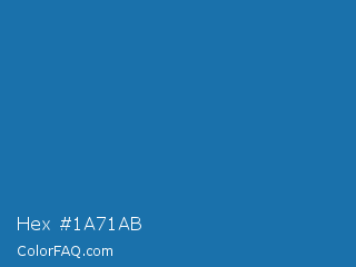 Hex #1a71ab Color is a normal blue color and the nearest color is Green Blue #1164b4. Hex code #1a71ab and RGB value is rgb(26,113,171). In RGB color space, this color is composed of 10% red, 44% green, 67% blue, In CMYK color space, this color is composed of 85% cyan, 34% magenta, 0% yellow , 33% black , In HSL color space, this color has a hue angle of 204° , 74% saturation and 39% lightness.