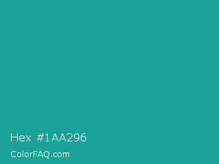 Hex #1aa296 Color is a normal cyan color and the nearest color is Jungle Green #29ab87. Hex code #1aa296 and RGB value is rgb(26,162,150). In RGB color space, this color is composed of 10% red, 64% green, 59% blue, In CMYK color space, this color is composed of 84% cyan, 0% magenta, 7% yellow , 36% black , In HSL color space, this color has a hue angle of 175° , 72% saturation and 37% lightness.