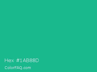 Hex #1ab88d Color is a normal cyan color and the nearest color is Mountain Meadow Crayola #1ab385. Hex code #1ab88d and RGB value is rgb(26,184,141). In RGB color space, this color is composed of 10% red, 72% green, 55% blue, In CMYK color space, this color is composed of 86% cyan, 0% magenta, 23% yellow , 28% black , In HSL color space, this color has a hue angle of 164° , 75% saturation and 41% lightness.