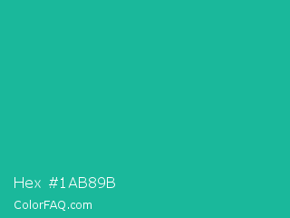 Hex #1ab89b Color is a normal cyan color and the nearest color is Light Sea Green #20b2aa. Hex code #1ab89b and RGB value is rgb(26,184,155). In RGB color space, this color is composed of 10% red, 72% green, 61% blue, In CMYK color space, this color is composed of 86% cyan, 0% magenta, 16% yellow , 28% black , In HSL color space, this color has a hue angle of 169° , 75% saturation and 41% lightness.
