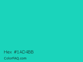 Hex #1ad4bb Color is a normal cyan color and the nearest color is Java #1fc2c2. Hex code #1ad4bb and RGB value is rgb(26,212,187). In RGB color space, this color is composed of 10% red, 83% green, 73% blue, In CMYK color space, this color is composed of 88% cyan, 0% magenta, 12% yellow , 17% black , In HSL color space, this color has a hue angle of 172° , 78% saturation and 47% lightness.