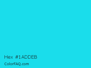 Hex #1addeb Color is a normal cyan color and the nearest color is Bright Turquoise #08e8de. Hex code #1addeb and RGB value is rgb(26,221,235). In RGB color space, this color is composed of 10% red, 87% green, 92% blue, In CMYK color space, this color is composed of 89% cyan, 6% magenta, 0% yellow , 8% black , In HSL color space, this color has a hue angle of 184° , 84% saturation and 51% lightness.