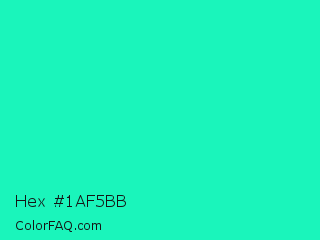 Hex #1af5bb Color is a normal cyan color and the nearest color is Turquoise PWG #30d5c8. Hex code #1af5bb and RGB value is rgb(26,245,187). In RGB color space, this color is composed of 10% red, 96% green, 73% blue, In CMYK color space, this color is composed of 89% cyan, 0% magenta, 24% yellow , 4% black , In HSL color space, this color has a hue angle of 164° , 92% saturation and 53% lightness.