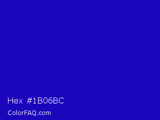 Hex #1b06bc Color is a normal indigo color and the nearest color is Dark Blue #0000c8. Hex code #1b06bc and RGB value is rgb(27,6,188). In RGB color space, this color is composed of 11% red, 2% green, 74% blue, In CMYK color space, this color is composed of 86% cyan, 97% magenta, 0% yellow , 26% black , In HSL color space, this color has a hue angle of 247° , 94% saturation and 38% lightness.