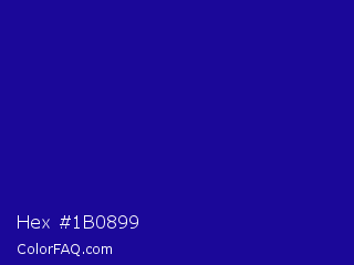 Hex #1b0899 Color is a normal indigo color and the nearest color is Ultramarine #120a8f. Hex code #1b0899 and RGB value is rgb(27,8,153). In RGB color space, this color is composed of 11% red, 3% green, 60% blue, In CMYK color space, this color is composed of 82% cyan, 95% magenta, 0% yellow , 40% black , In HSL color space, this color has a hue angle of 248° , 90% saturation and 32% lightness.