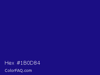 Hex #1b0d84 Color is a dark indigo color and the nearest color is Deep Koamaru #1b127b. Hex code #1b0d84 and RGB value is rgb(27,13,132). In RGB color space, this color is composed of 11% red, 5% green, 52% blue, In CMYK color space, this color is composed of 80% cyan, 90% magenta, 0% yellow , 48% black , In HSL color space, this color has a hue angle of 247° , 82% saturation and 28% lightness.