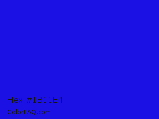 Hex #1b11e4 Color is a normal indigo color and the nearest color is Bluebonnet #1c1cf0. Hex code #1b11e4 and RGB value is rgb(27,17,228). In RGB color space, this color is composed of 11% red, 7% green, 89% blue, In CMYK color space, this color is composed of 88% cyan, 93% magenta, 0% yellow , 11% black , In HSL color space, this color has a hue angle of 243° , 86% saturation and 48% lightness.