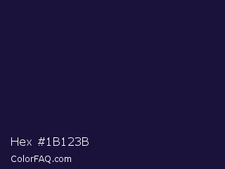 Hex #1b123b Color is a very dark indigo color and the nearest color is Haiti #1b1035. Hex code #1b123b and RGB value is rgb(27,18,59). In RGB color space, this color is composed of 11% red, 7% green, 23% blue, In CMYK color space, this color is composed of 54% cyan, 69% magenta, 0% yellow , 77% black , In HSL color space, this color has a hue angle of 253° , 53% saturation and 15% lightness.