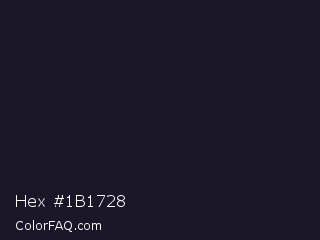 Hex #1b1728 Color is a very dark indigo color and the nearest color is Mirage #161928. Hex code #1b1728 and RGB value is rgb(27,23,40). In RGB color space, this color is composed of 11% red, 9% green, 16% blue, In CMYK color space, this color is composed of 33% cyan, 43% magenta, 0% yellow , 84% black , In HSL color space, this color has a hue angle of 254° , 27% saturation and 12% lightness.