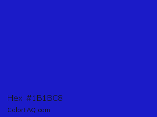 Hex #1b1bc8 Color is a normal blue color and the nearest color is Interdimensional Blue #360ccc. Hex code #1b1bc8 and RGB value is rgb(27,27,200). In RGB color space, this color is composed of 11% red, 11% green, 78% blue, In CMYK color space, this color is composed of 87% cyan, 87% magenta, 0% yellow , 22% black , In HSL color space, this color has a hue angle of 240° , 76% saturation and 45% lightness.