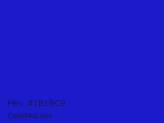 Hex #1b1bc9 Color is a normal blue color and the nearest color is Interdimensional Blue #360ccc. Hex code #1b1bc9 and RGB value is rgb(27,27,201). In RGB color space, this color is composed of 11% red, 11% green, 79% blue, In CMYK color space, this color is composed of 87% cyan, 87% magenta, 0% yellow , 21% black , In HSL color space, this color has a hue angle of 240° , 76% saturation and 45% lightness.