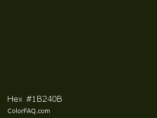 Hex #1b240b Color is a almost black green color and the nearest color is Pine Tree #171f04. Hex code #1b240b and RGB value is rgb(27,36,11). In RGB color space, this color is composed of 11% red, 14% green, 4% blue, In CMYK color space, this color is composed of 25% cyan, 0% magenta, 69% yellow , 86% black , In HSL color space, this color has a hue angle of 82° , 53% saturation and 9% lightness.
