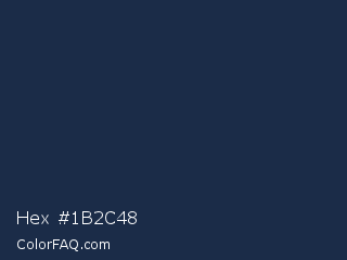 Hex #1b2c48 Color is a very dark blue color and the nearest color is Yankees Blue #1c2841. Hex code #1b2c48 and RGB value is rgb(27,44,72). In RGB color space, this color is composed of 11% red, 17% green, 28% blue, In CMYK color space, this color is composed of 63% cyan, 39% magenta, 0% yellow , 72% black , In HSL color space, this color has a hue angle of 217° , 45% saturation and 19% lightness.