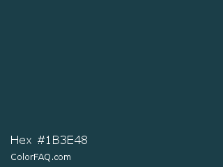Hex #1b3e48 Color is a very dark cyan color and the nearest color is Nile Blue #193751. Hex code #1b3e48 and RGB value is rgb(27,62,72). In RGB color space, this color is composed of 11% red, 24% green, 28% blue, In CMYK color space, this color is composed of 63% cyan, 14% magenta, 0% yellow , 72% black , In HSL color space, this color has a hue angle of 193° , 45% saturation and 19% lightness.