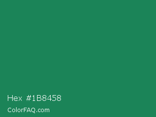 Hex #1b8458 Color is a normal green color and the nearest color is Eucalyptus #278a5b. Hex code #1b8458 and RGB value is rgb(27,132,88). In RGB color space, this color is composed of 11% red, 52% green, 35% blue, In CMYK color space, this color is composed of 80% cyan, 0% magenta, 33% yellow , 48% black , In HSL color space, this color has a hue angle of 155° , 66% saturation and 31% lightness.