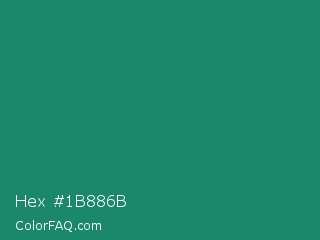 Hex #1b886b Color is a normal cyan color and the nearest color is Eucalyptus #278a5b. Hex code #1b886b and RGB value is rgb(27,136,107). In RGB color space, this color is composed of 11% red, 53% green, 42% blue, In CMYK color space, this color is composed of 80% cyan, 0% magenta, 21% yellow , 47% black , In HSL color space, this color has a hue angle of 164° , 67% saturation and 32% lightness.