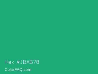 Hex #1bab78 Color is a normal green color and the nearest color is Green Crayola #1cac78. Hex code #1bab78 and RGB value is rgb(27,171,120). In RGB color space, this color is composed of 11% red, 67% green, 47% blue, In CMYK color space, this color is composed of 84% cyan, 0% magenta, 30% yellow , 33% black , In HSL color space, this color has a hue angle of 159° , 73% saturation and 39% lightness.
