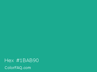 Hex #1bab90 Color is a normal cyan color and the nearest color is Mountain Meadow Crayola #1ab385. Hex code #1bab90 and RGB value is rgb(27,171,144). In RGB color space, this color is composed of 11% red, 67% green, 56% blue, In CMYK color space, this color is composed of 84% cyan, 0% magenta, 16% yellow , 33% black , In HSL color space, this color has a hue angle of 169° , 73% saturation and 39% lightness.