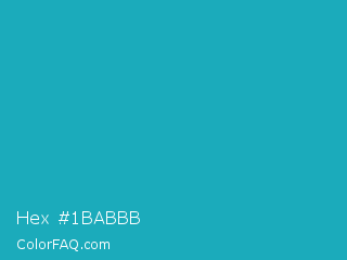 Hex #1babbb Color is a normal cyan color and the nearest color is Pacific Blue #1ca9c9. Hex code #1babbb and RGB value is rgb(27,171,187). In RGB color space, this color is composed of 11% red, 67% green, 73% blue, In CMYK color space, this color is composed of 86% cyan, 9% magenta, 0% yellow , 27% black , In HSL color space, this color has a hue angle of 186° , 75% saturation and 42% lightness.