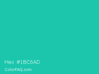 Hex #1bc6ad Color is a normal cyan color and the nearest color is Light Sea Green #20b2aa. Hex code #1bc6ad and RGB value is rgb(27,198,173). In RGB color space, this color is composed of 11% red, 78% green, 68% blue, In CMYK color space, this color is composed of 86% cyan, 0% magenta, 13% yellow , 22% black , In HSL color space, this color has a hue angle of 171° , 76% saturation and 44% lightness.