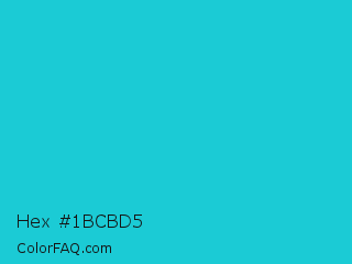 Hex #1bcbd5 Color is a normal cyan color and the nearest color is Java #1fc2c2. Hex code #1bcbd5 and RGB value is rgb(27,203,213). In RGB color space, this color is composed of 11% red, 80% green, 84% blue, In CMYK color space, this color is composed of 87% cyan, 5% magenta, 0% yellow , 16% black , In HSL color space, this color has a hue angle of 183° , 78% saturation and 47% lightness.