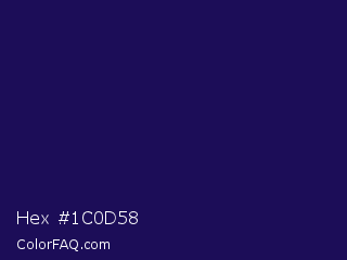 Hex #1c0d58 Color is a very dark indigo color and the nearest color is Violent Violet #290c5e. Hex code #1c0d58 and RGB value is rgb(28,13,88). In RGB color space, this color is composed of 11% red, 5% green, 35% blue, In CMYK color space, this color is composed of 68% cyan, 85% magenta, 0% yellow , 65% black , In HSL color space, this color has a hue angle of 252° , 74% saturation and 20% lightness.